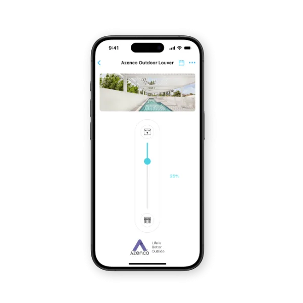 Take control of your outdoor experience with the R-BLADE™ motorized pergola. Its adjustable louvers quietly rotate up to 90 degrees, letting you customize sun, shade, and airflow exactly how you like it—all day long.